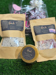 Foot Soak: Epsom Salt, Himalayan Salt, Magnesium Flakes, Baking Soda, Lemon Oil, Tea Tree Oil, Peppermint Oil, Lavender Oil, Frankincense Oil & Avocado Oil
