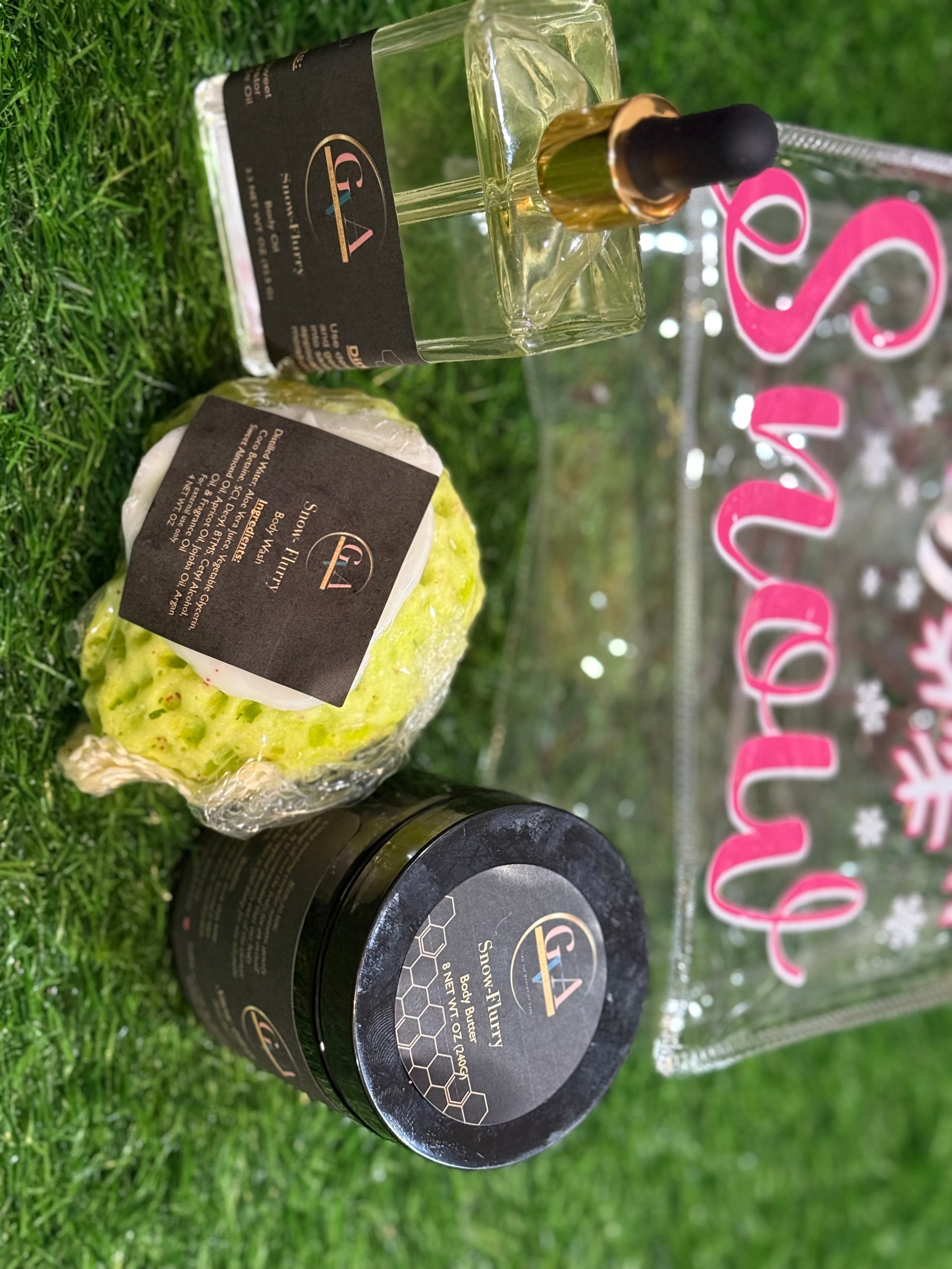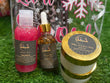 Perfect Kit for after waxing and/or shaving. Available in a full size ( 4 oz. wash, 6.8 oz. scrub, & 2 oz. oil) & sample size ( 2 oz. wash, 2 oz. scrub, & 1 oz. oil)